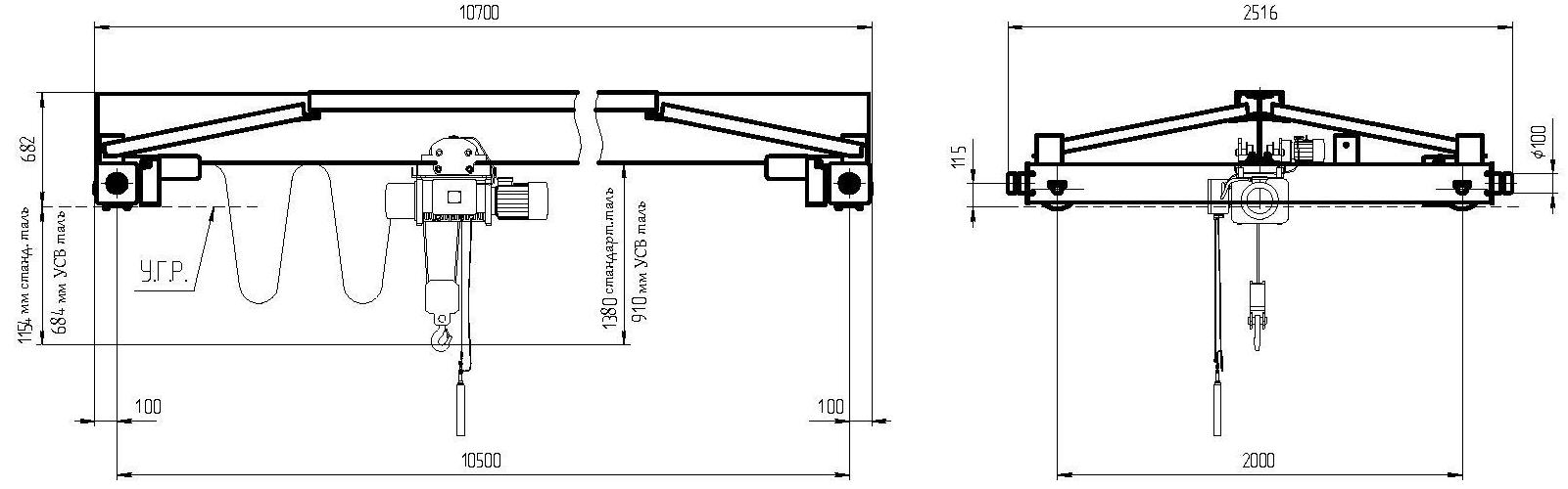 | Высота крана от уровня головки рельса (УГР) кранового пути | 682 | |