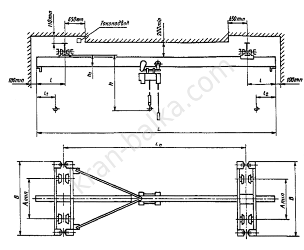 Данный фактор очень важен, так как, как это очень часто бывает, расстояние между крайними нижними элементами перекрытия здания и максимальной точкой подъема груза, недостаточно для того, чтобы разместить на нем подкрановые пути, кран-балку, тельфер и стропы.